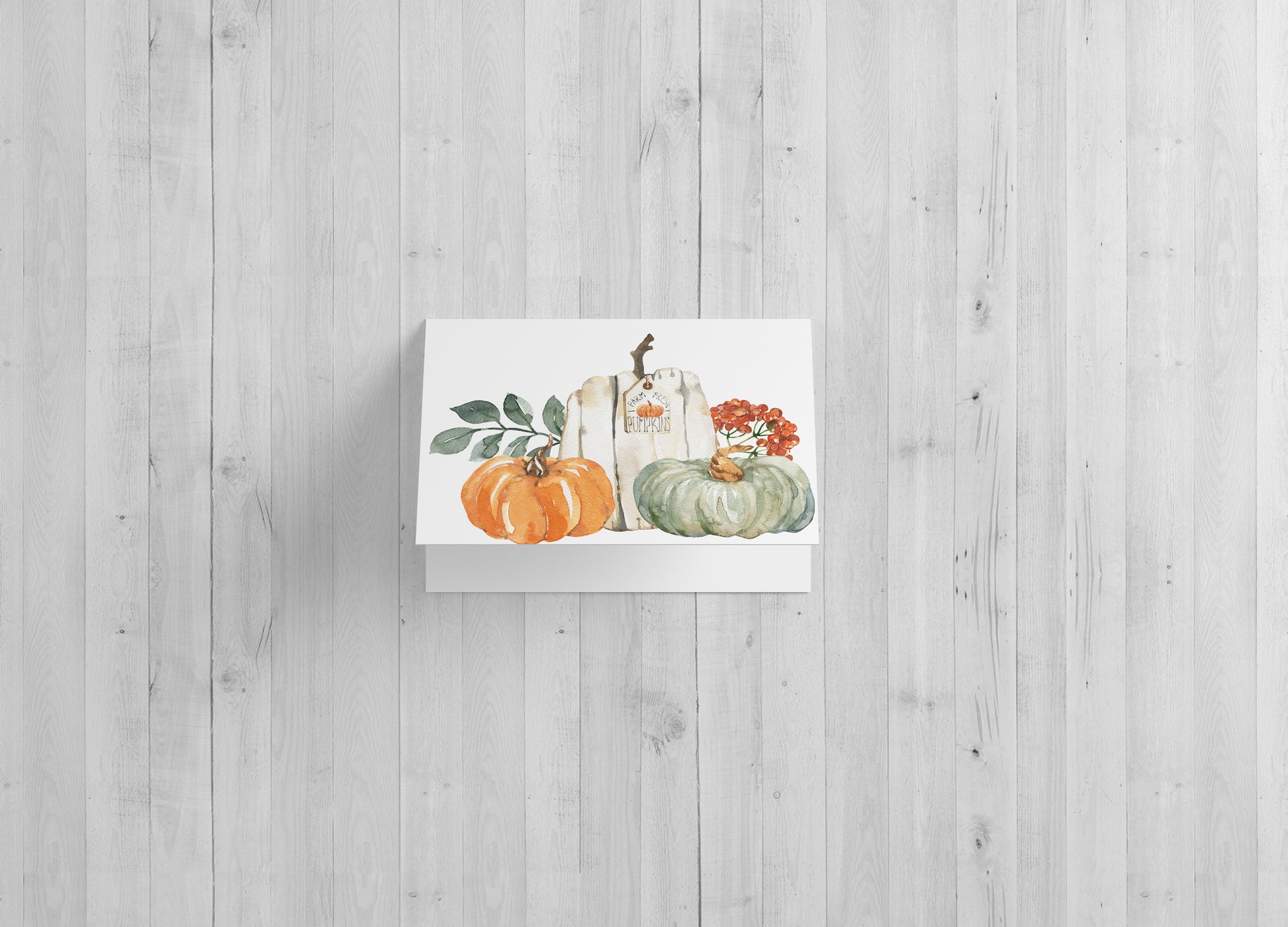 Welcome fall with this lovely card featuring a trio of trendy pumpkins. The blank 5x7 card gives plenty of room for writing a note of gratitude, encouragement, or greetings. Includes 20 cards and A7 envelopes. Made in the USA!
