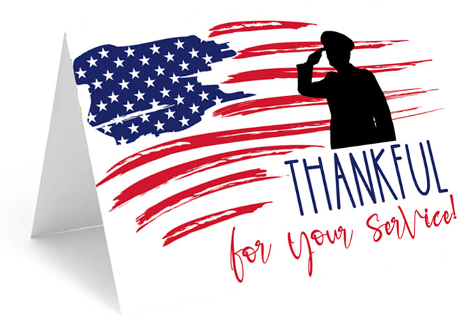 Thankful for service Military Cards - Single or pack of 20