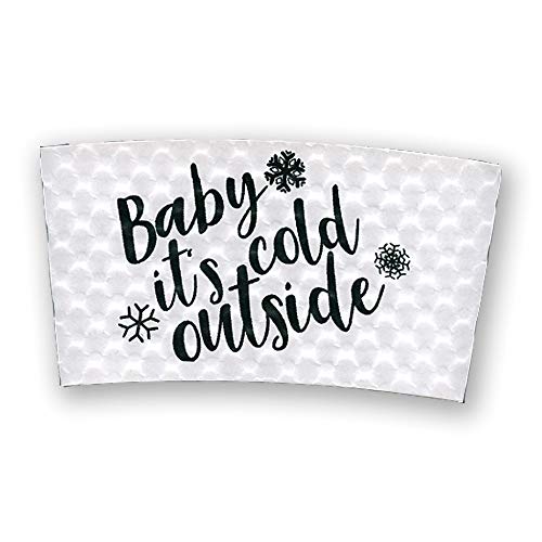 Baby, it's cold outside, but let's warm up with a cup of Hot Cocoa, Tea, or Coffee using these trendy, festive, Baby It's Cold Outside coffee cup sleeves! The design is printed in black on a white background. The sleeves are perfect for any winter gathering. Cup sleeves designs are original. The insulated sleeves are made of earth-friendly, 100% recyclable materials! Each pack contains 30 cup sleeves that fit a standard 12, 16, or 20 oz paper coffee cup.