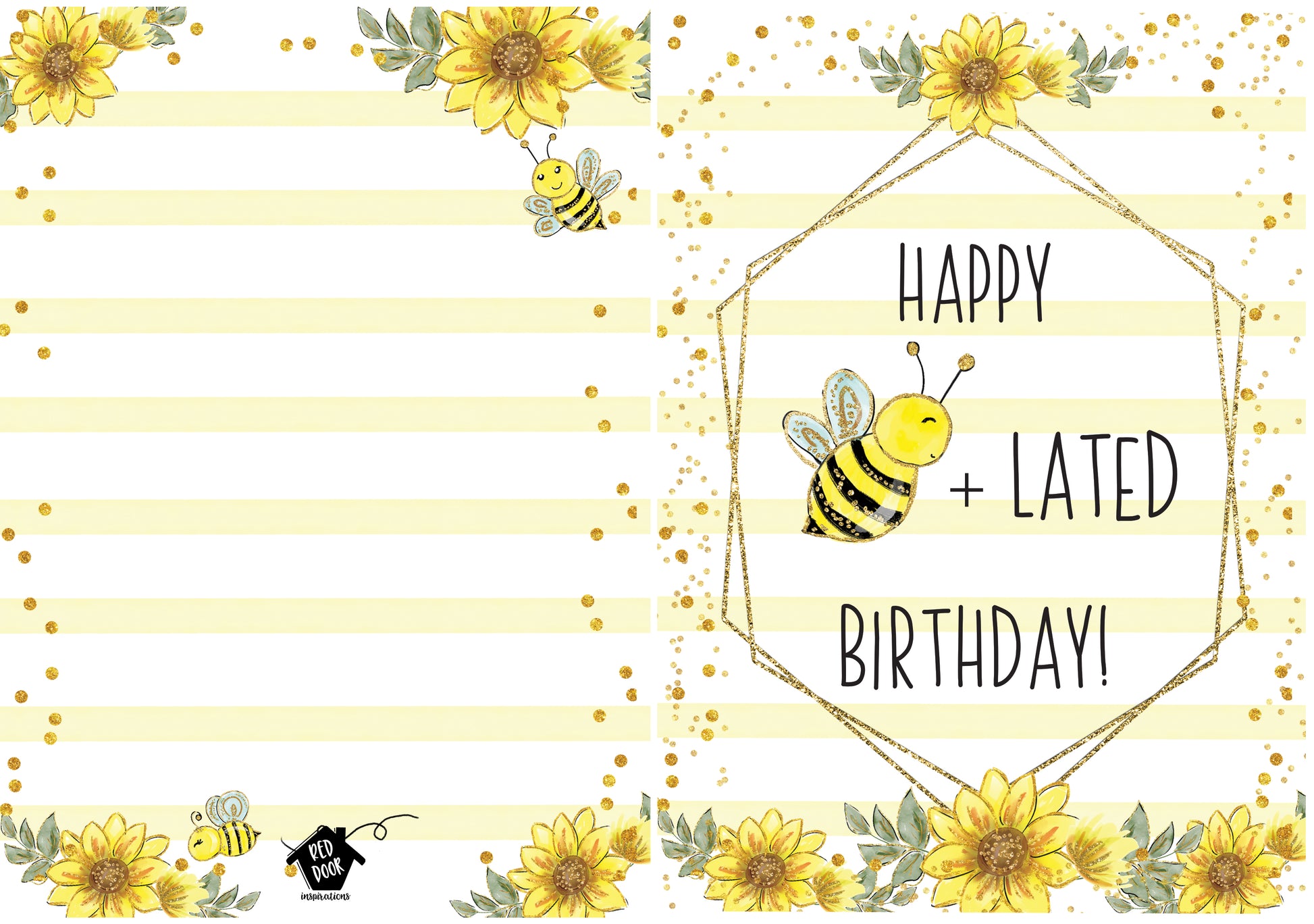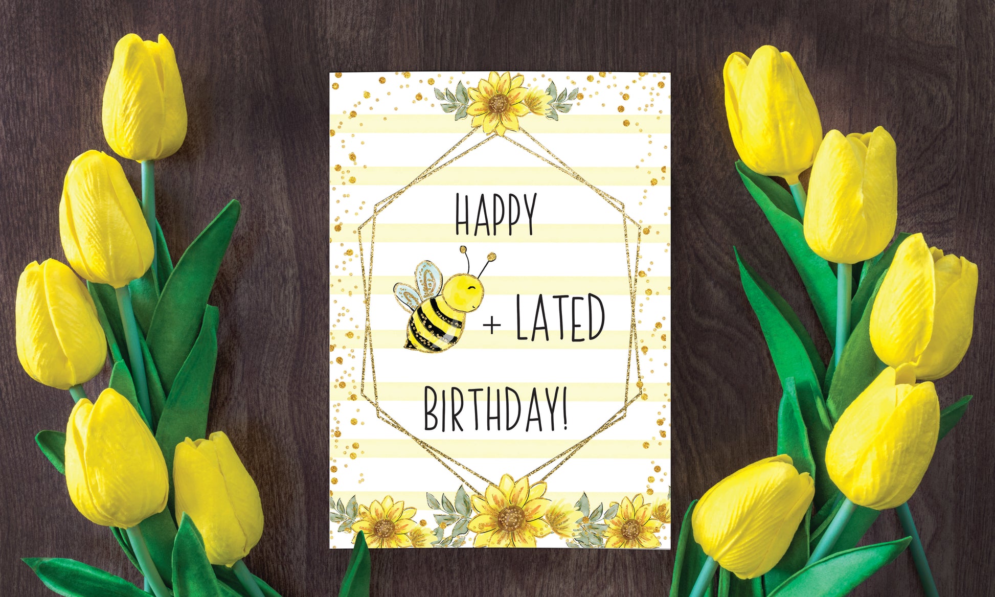 We try really hard to remember the birthday of friends and family members. We put reminders in our phone, we see it on the calendar, but sometimes life is just crazy busy and that day just slips by. Even if you missed their special day, you don't have to miss out on sending them best wishes and letting them know you care. This Bee-lated birthday card is full of cheerfulness. The bright yellow colors, along with the sunflowers is sure to bring a smile to the recipients face! The inside of the card has the message, "Hope your day was overflowing with joy, sunshine, and friends who remembered! Happy Birthday!" The 5x7 inch card is printed on card stock. Made in the USA!