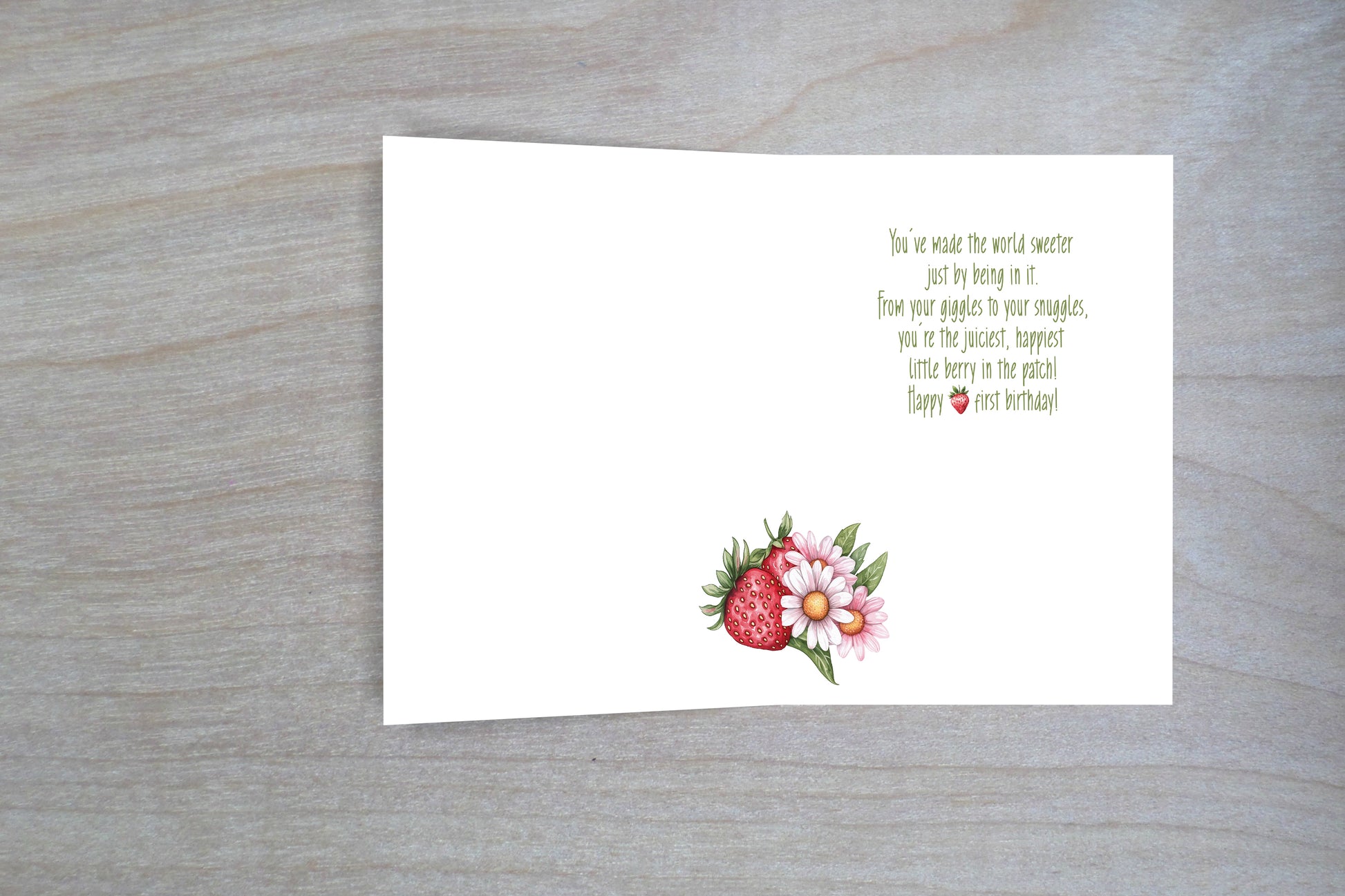 - Berry Sweet First Birthday – Celebrate a whole year of giggles and growth with this adorable strawberry-themed card, perfect for your favorite little one-year-old.