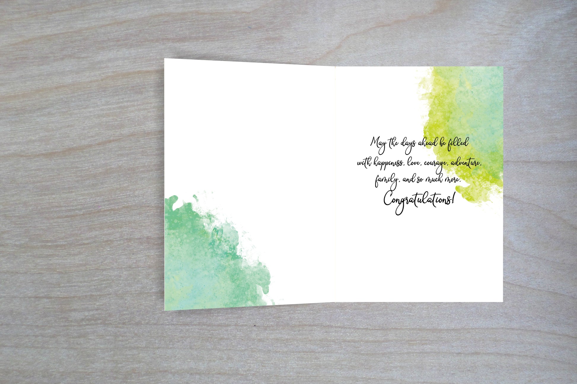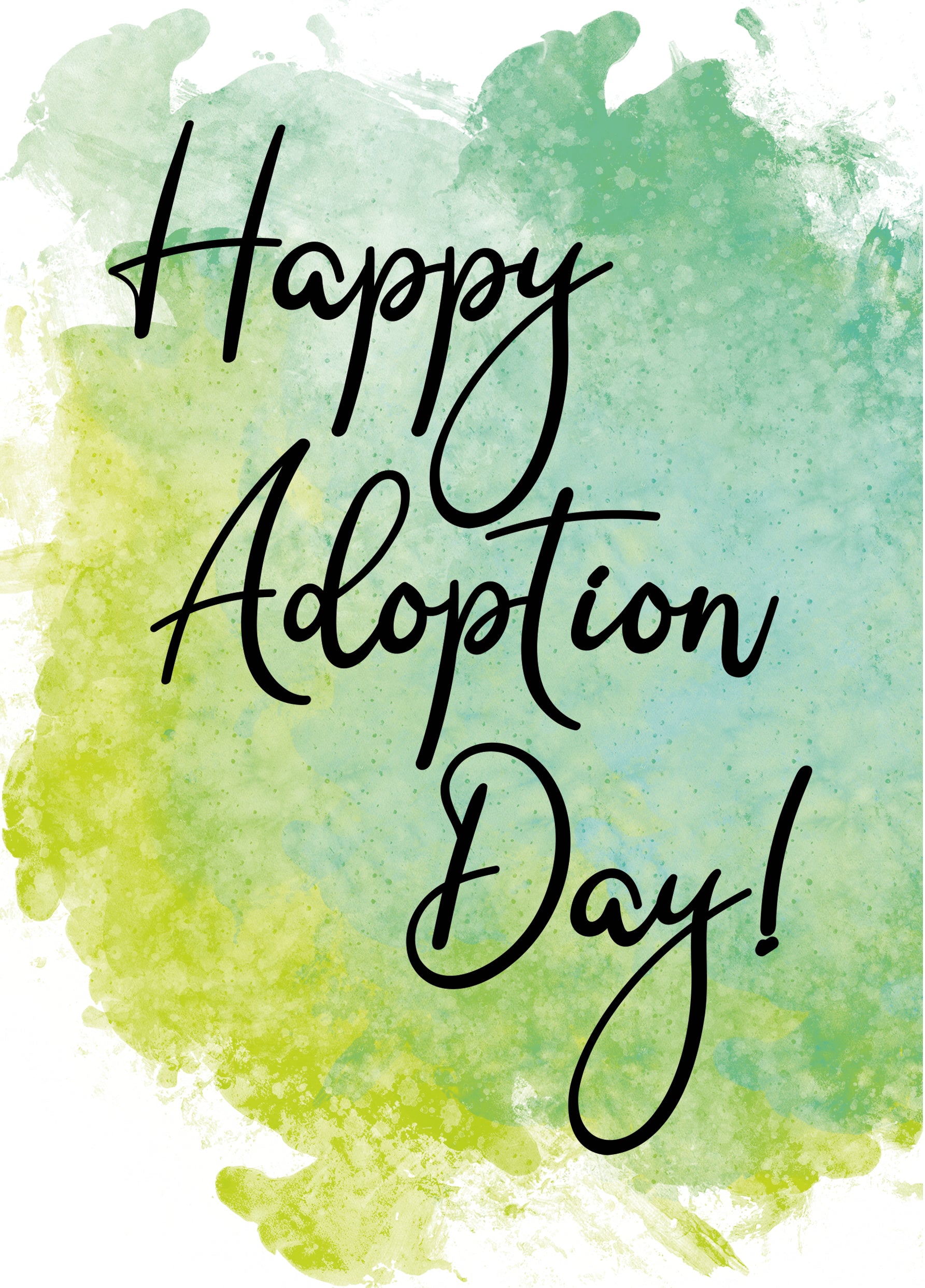 It's time to celebrate!!! Not many things are more special than a family growing by additional feet! Adoption is a beautiful thing. Share in this joyful time by sending this Happy Adoption Day Card. This card is perfect for any age, boy or girl! The outside of this 5x7 card features blue and green watercolor splotches and the words, "Happy Adoption Day!". The inside of the card features more of the same blue and green watercolor and the message, "May the days ahead be filled with happiness, love, courage, adventure, family, and so much more. Congratulations!". The cards are printed on heavy card stock. Share in the excitement of this happy time by letting the recipient know how special they are. Made in the USA!