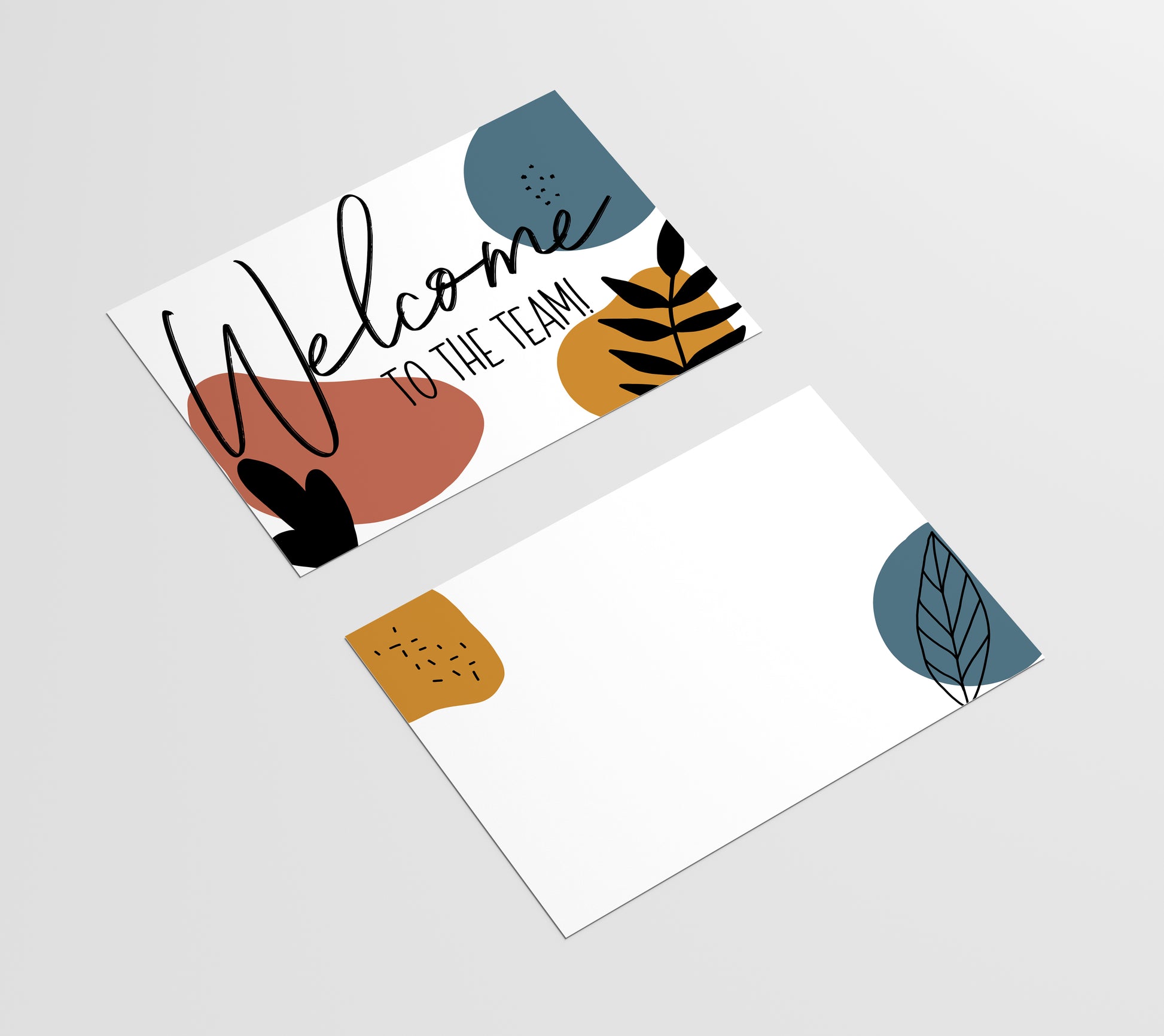 Welcome the newest members to the team with this trendy Boho Chic Flat Card. The front of the card feature a mix of colors and patterns with the words, "Welcome to the Team". The back of the card leaves plenty of room for signatures, well wishes, or could be left blank. Made in the USA!