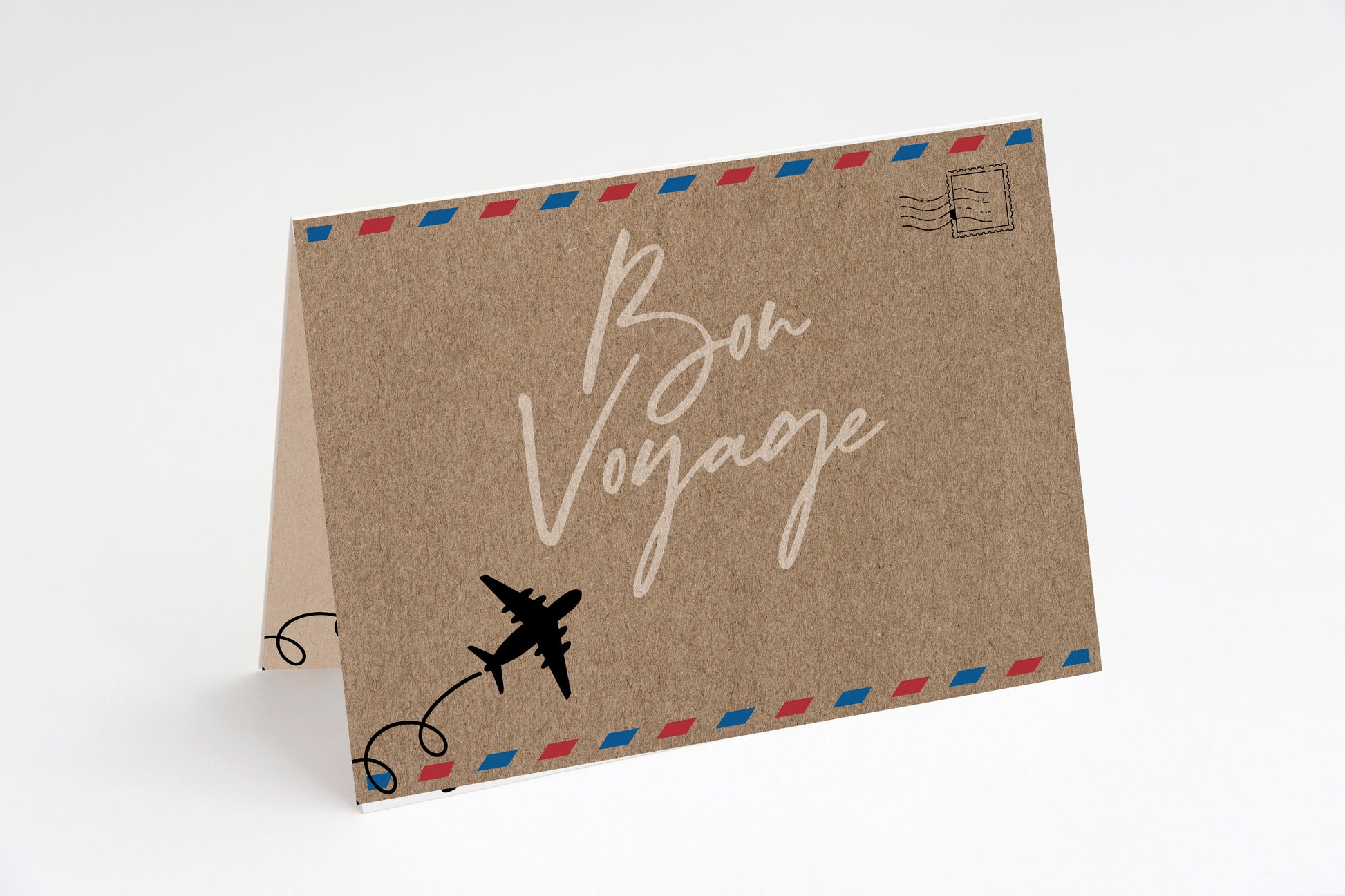 Celebrate (although sometimes bittersweet) the retiree, world traveler, co-worker, friend as they embark on another adventure! The front of our Bon Voyage greeting cards, resembles an airmail envelope with Bon Voyage across the front. The inside of the card has the message, "Enjoy the Adventure!" leaving plenty of room for a personal message, or plenty of signatures. 5x7 inch card printed on quality card stock. Made in the USA! Includes single card and envelope.