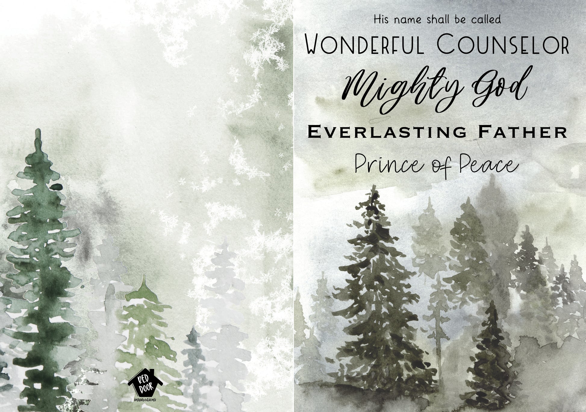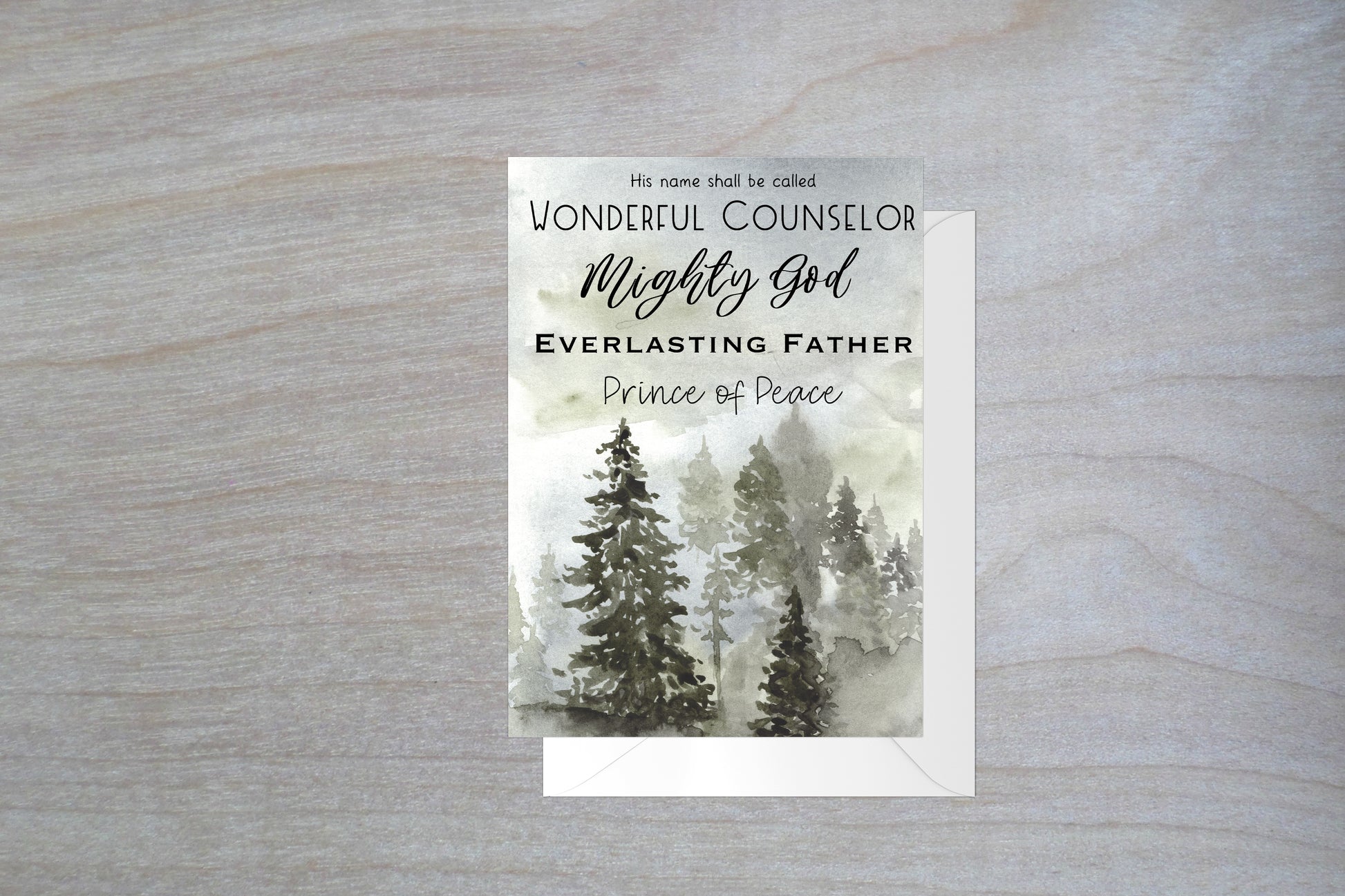 Encourage your friends and family with a message of hope this Christmas season. On the outside of this Merry Christmas Card greeting is the verse Isaiah 9:6b "His name shall be called Wonderful Counselor, Mighty God, Everlasting Father, Prince of Peace". The inside of the card has the message, "May you experience the joy of the season thanks to the gift of our Savior! Glory to the Newborn King!" When folded, the card measures 5"x7" and is printed on uncoated card stock. 20 cards and envelopes includes in the package. Made in the USA!