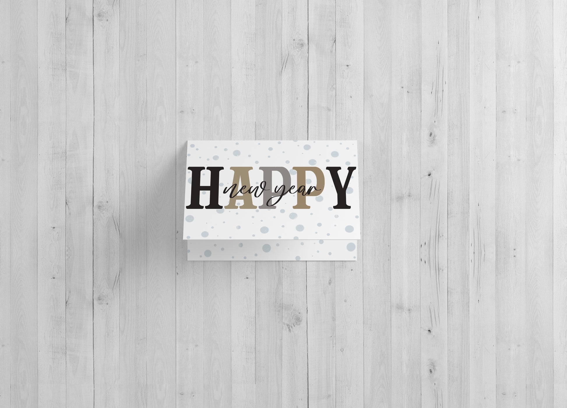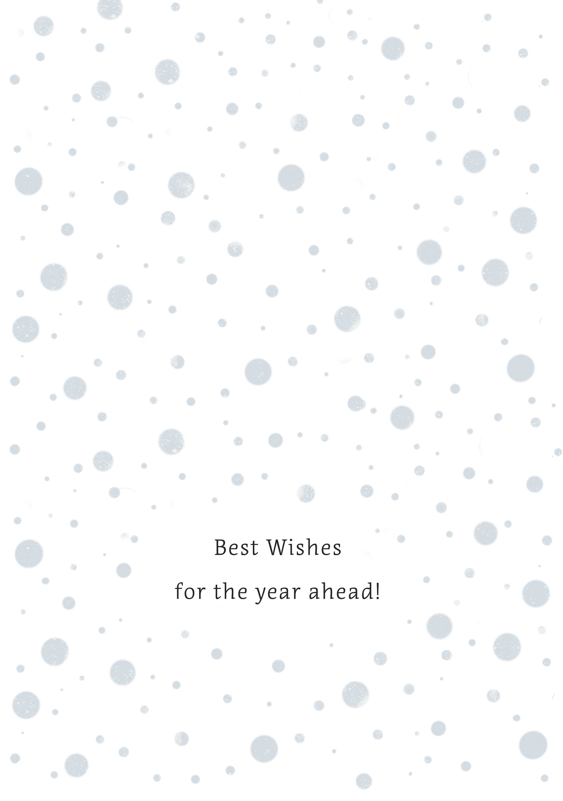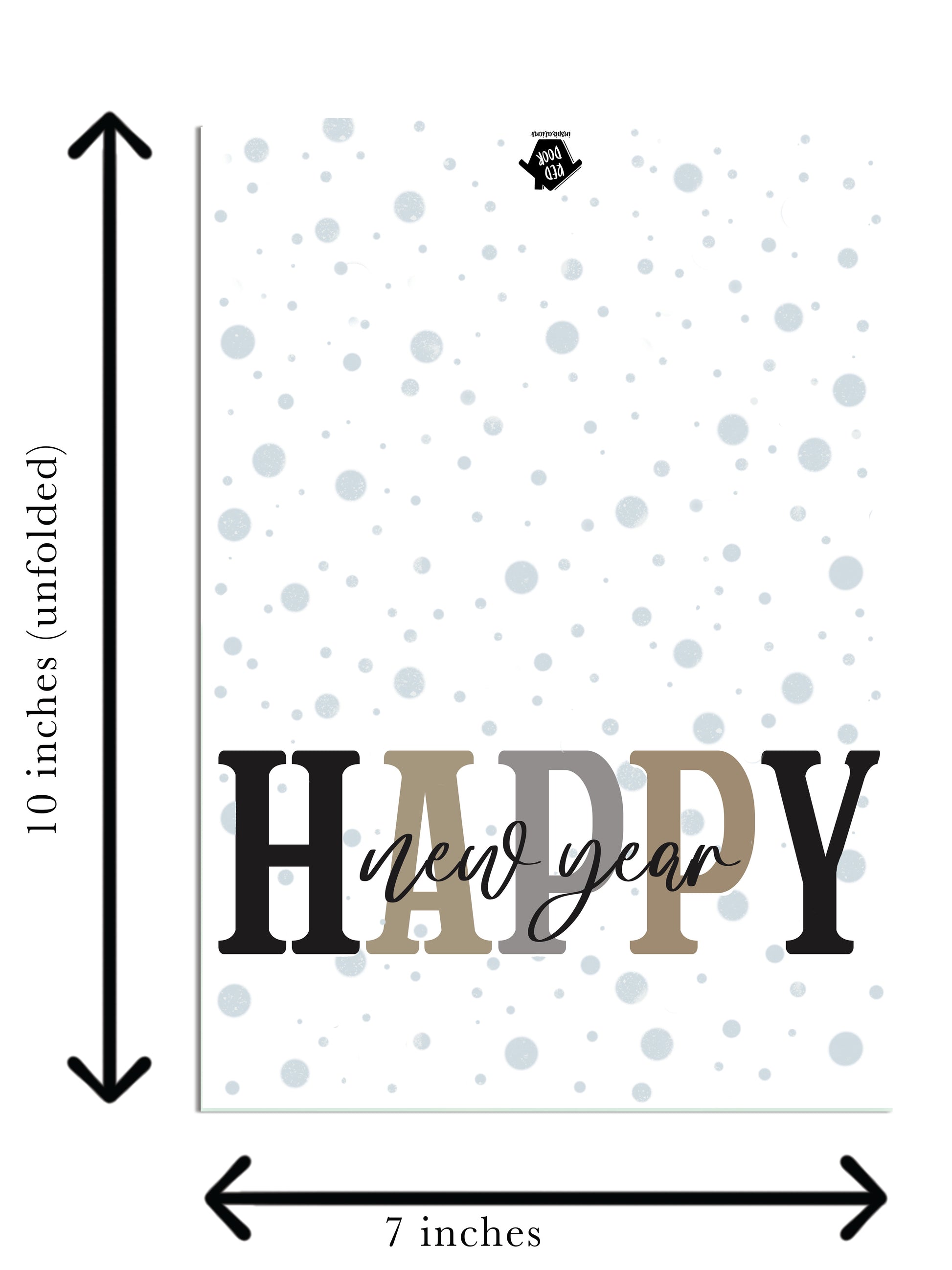 Ring in the New Year with these trendy Happy New Year Greeting Cards. On the outside of the large 5x7 card the "HAPPY" font is black, gold, and silver with a script "new year" overlapping. The outside and inside of the card have a sophisticated yet fun background of silver bubbles. The message on the inside of the card reads, “Best Wishes for the year ahead”. Printed on card stock. Made in the USA!
