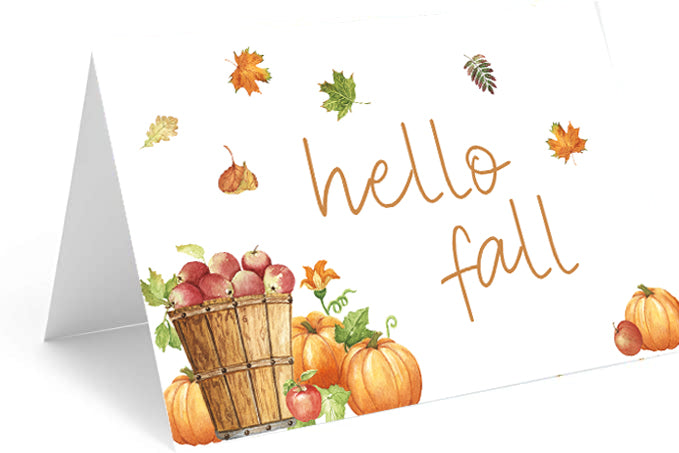This note card brings out the serenity of the fall season by featuring falling leaves, and the harvest of pumpkins, and apples. The card is versatile - useful for sending encouragement, thanks, or a fall hello! The inside of the card is blank with room for your personal message. Includes 20 cards and envelopes. Made in the USA!