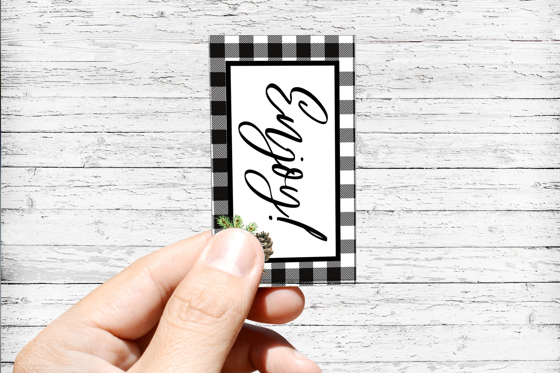 What a fun treat Hot Cocoa Bombs make! Be sure the recipient knows the best way to enjoy a delicious cup of Hot Chocolate by slipping one of these small cards along with the treat. The cards are 2" x 3.5". They have a glossy coat on them which makes the cards extra nice. The front of the card has the instructions and the back of the card says, "Enjoy!" The card's design is trendy with the white and black buffalo plaid accents. 50 cards in a package. Made in the USA!