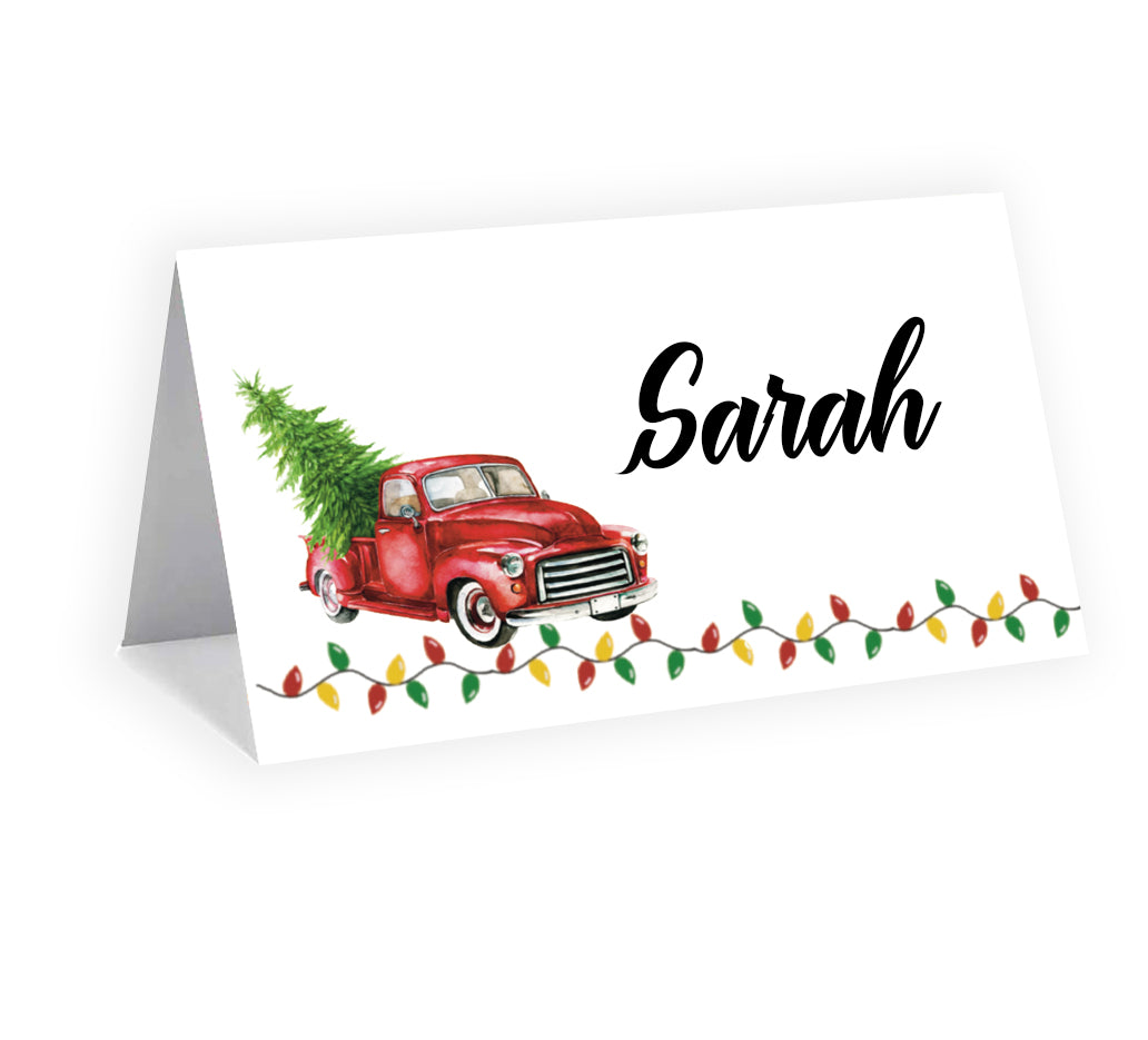 Add an extra touch of Christmas to your Weddings, Dinner Parties, Buffet, or Catering Displays as well as all your Holiday get togethers. These Christmas Place Cards feature two red truck designs. Perfect for place cards at the table, food labels, and gift tags on those special packages. Made in the USA! 30 pack (15 of each design)
