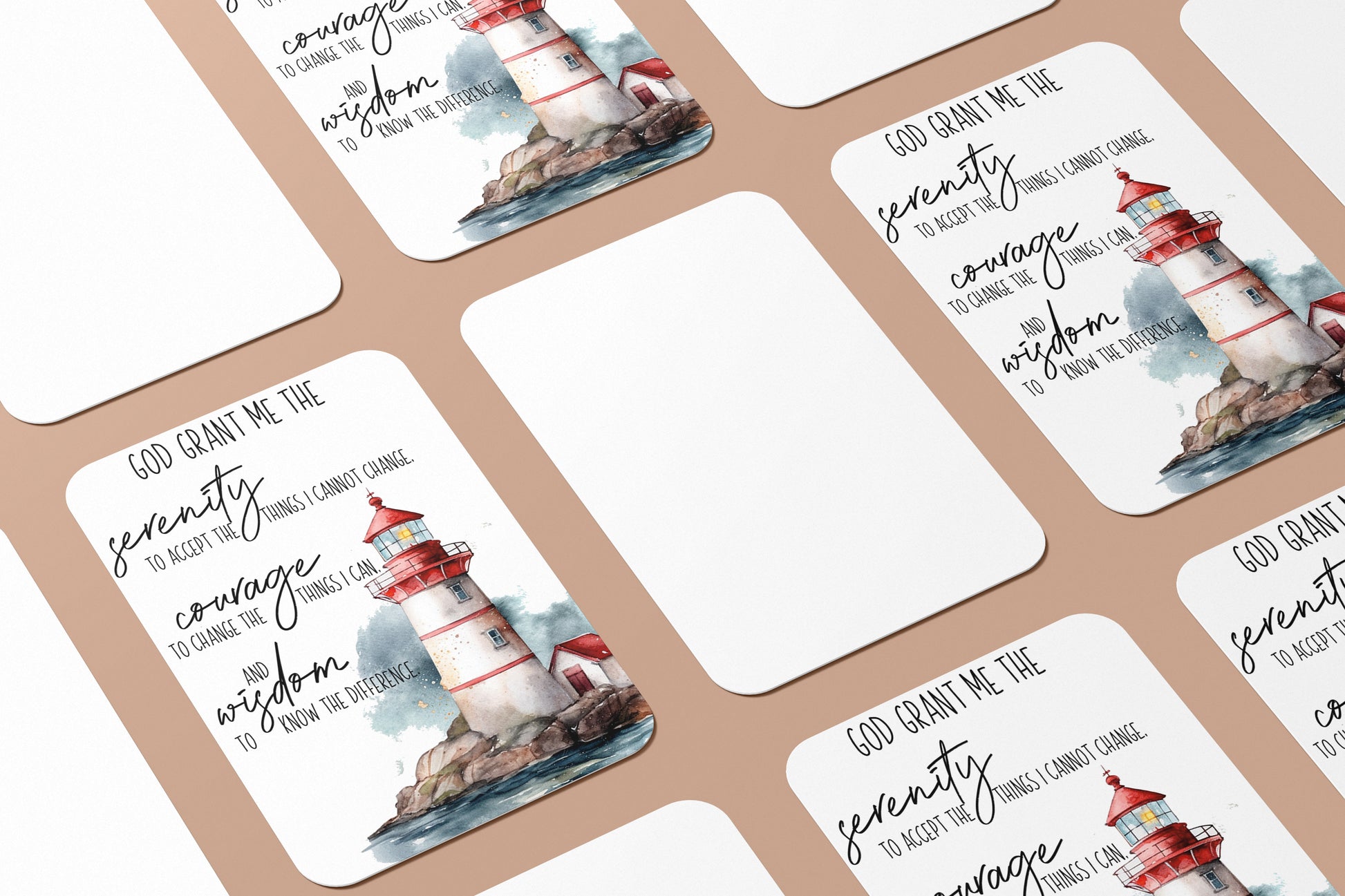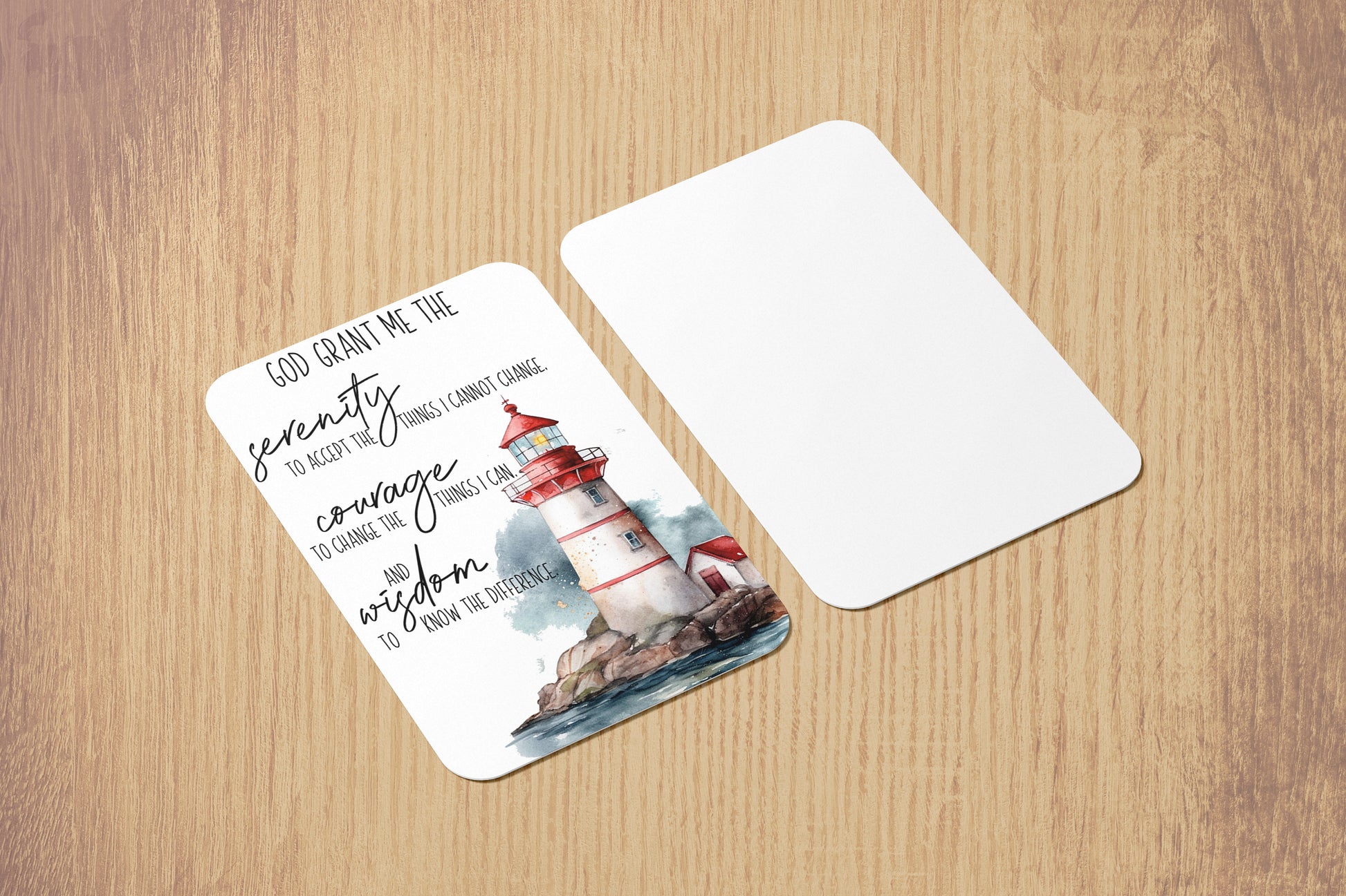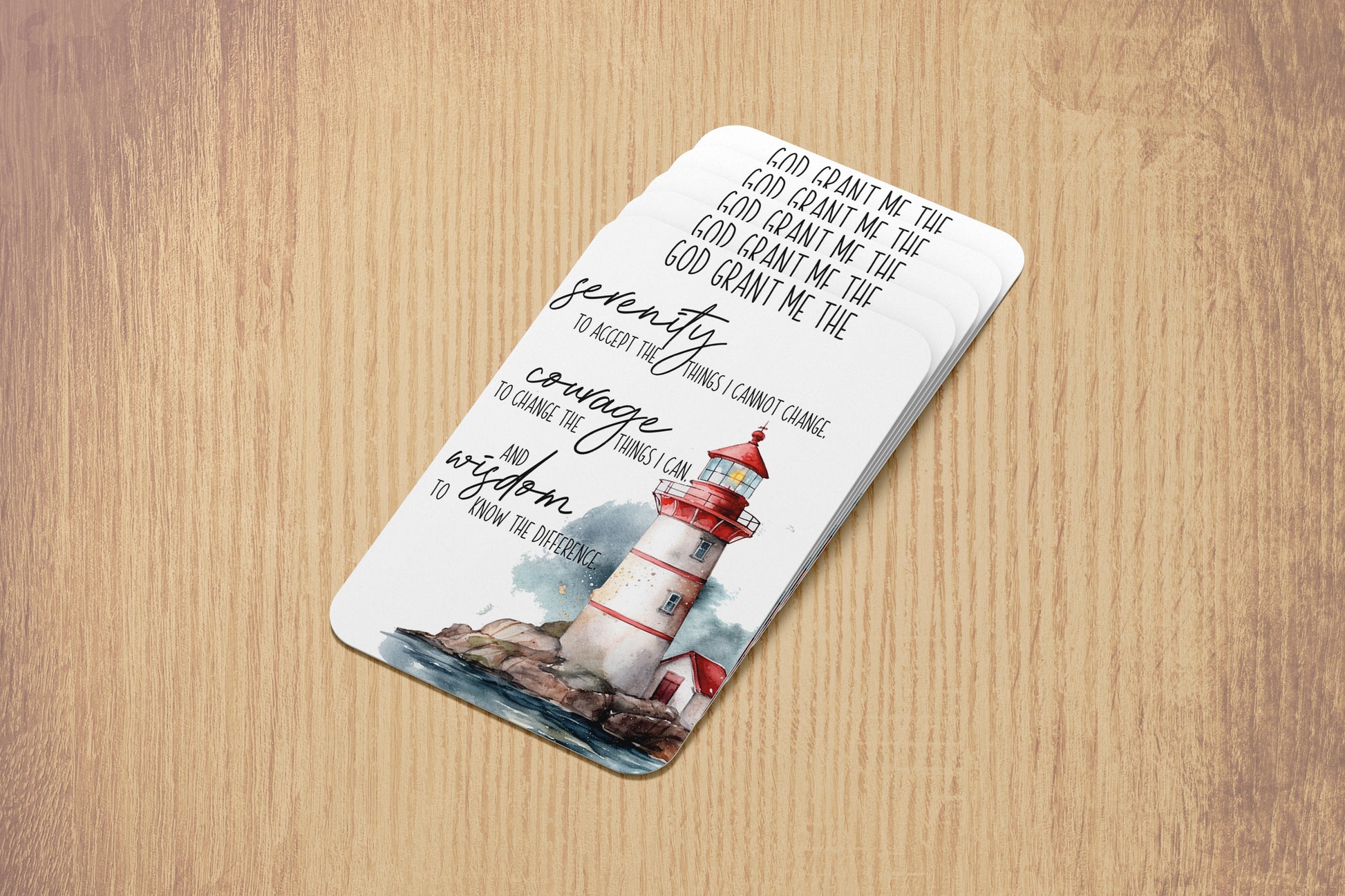 Be reminded, with our Serenity Pocket Prayer Cards, that there are circumstances that can and can not be changed and be bold to take action in the things that can! Our Serenity Pocket Cards are 3x4 inches. The front of the card features a lighthouse with the Serenity Prayer. The back of card is blank. Printed on card stock. 25 cards in a pack. Made in the USA!